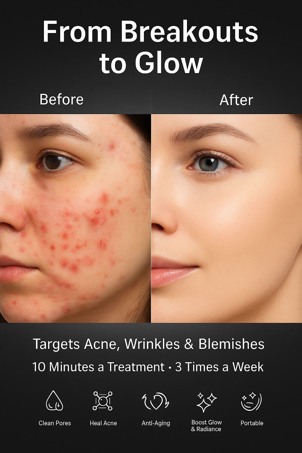 Answer 1: This device is designed to address multiple skin concerns such as acne, fine lines, blemishes, and promoting hair growth. It features interchangeable tubes that allow you to customize your treatment - using Neon for anti-aging benefits and Argon for acne and blemishes.