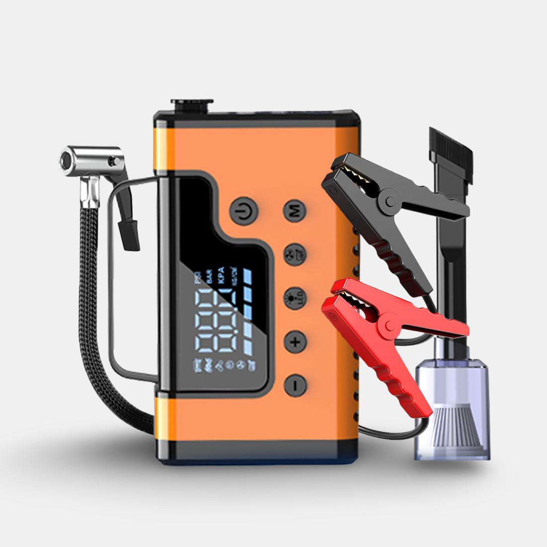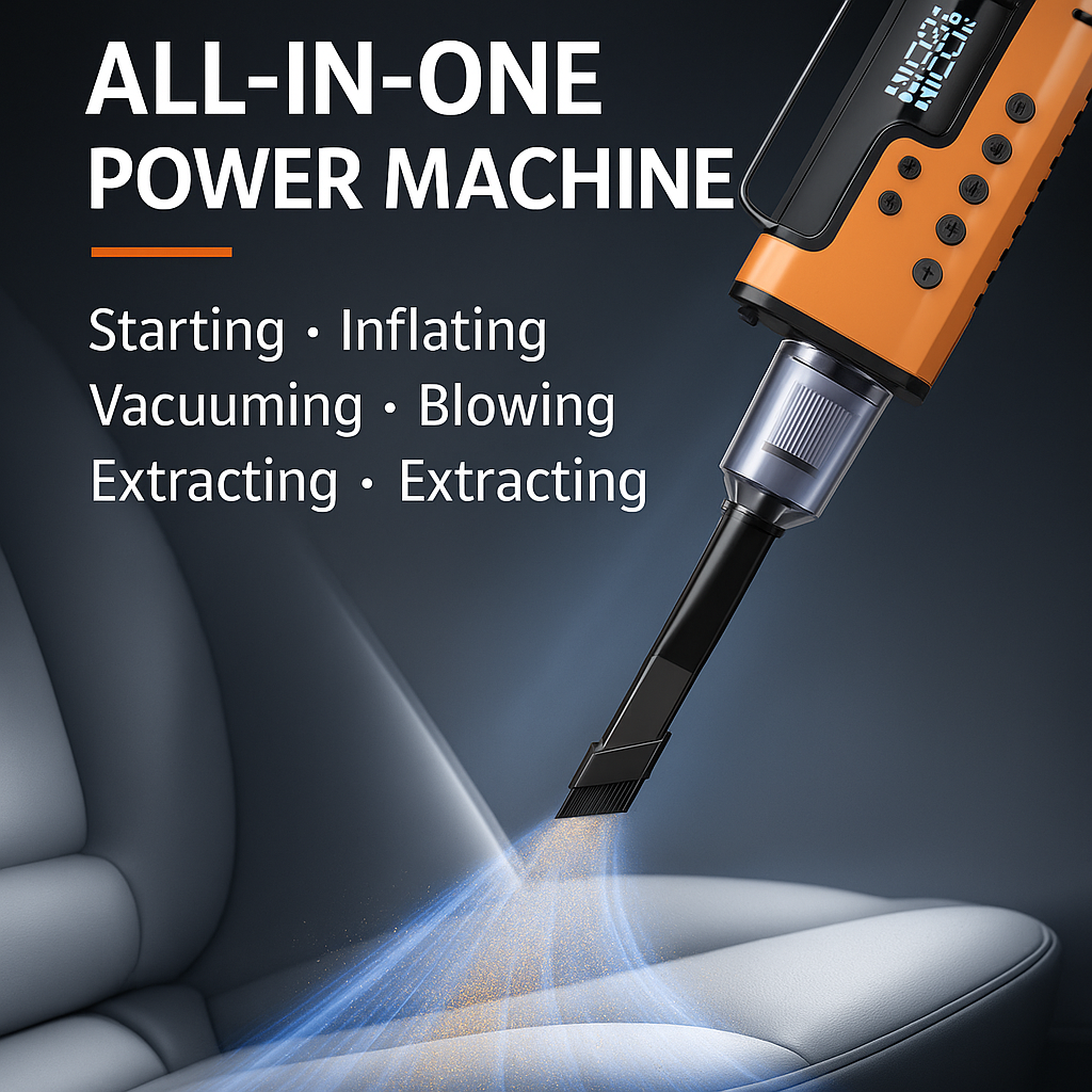 Portable 8-in-1 Car Jump Starter & Power Station – 3000A Peak Battery Booster with Air Compressor, Vacuum Cleaner, Power Bank & LED Flashlight